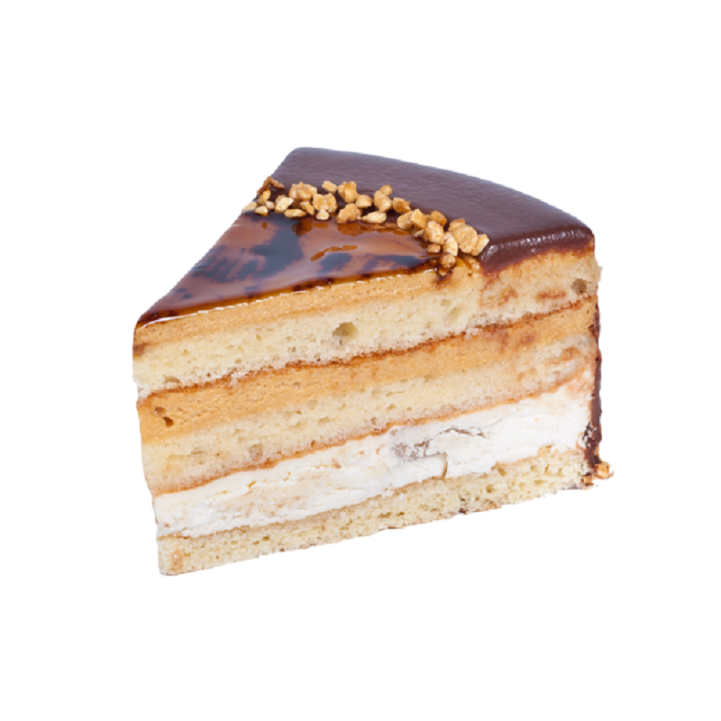 Песочная основа с добавлением карамели, легкий карамельный крем с добавлением банана.