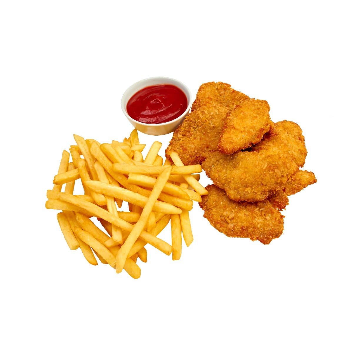 Куриные наггетсы с картофелем фри и кетчупом