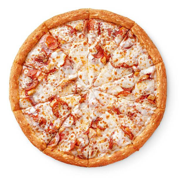 Состав: цыпленок, корнишоны, бекон, шампиньоны, сыр моцарелла, сыр пармезан, лук, укроп, фирменный соус