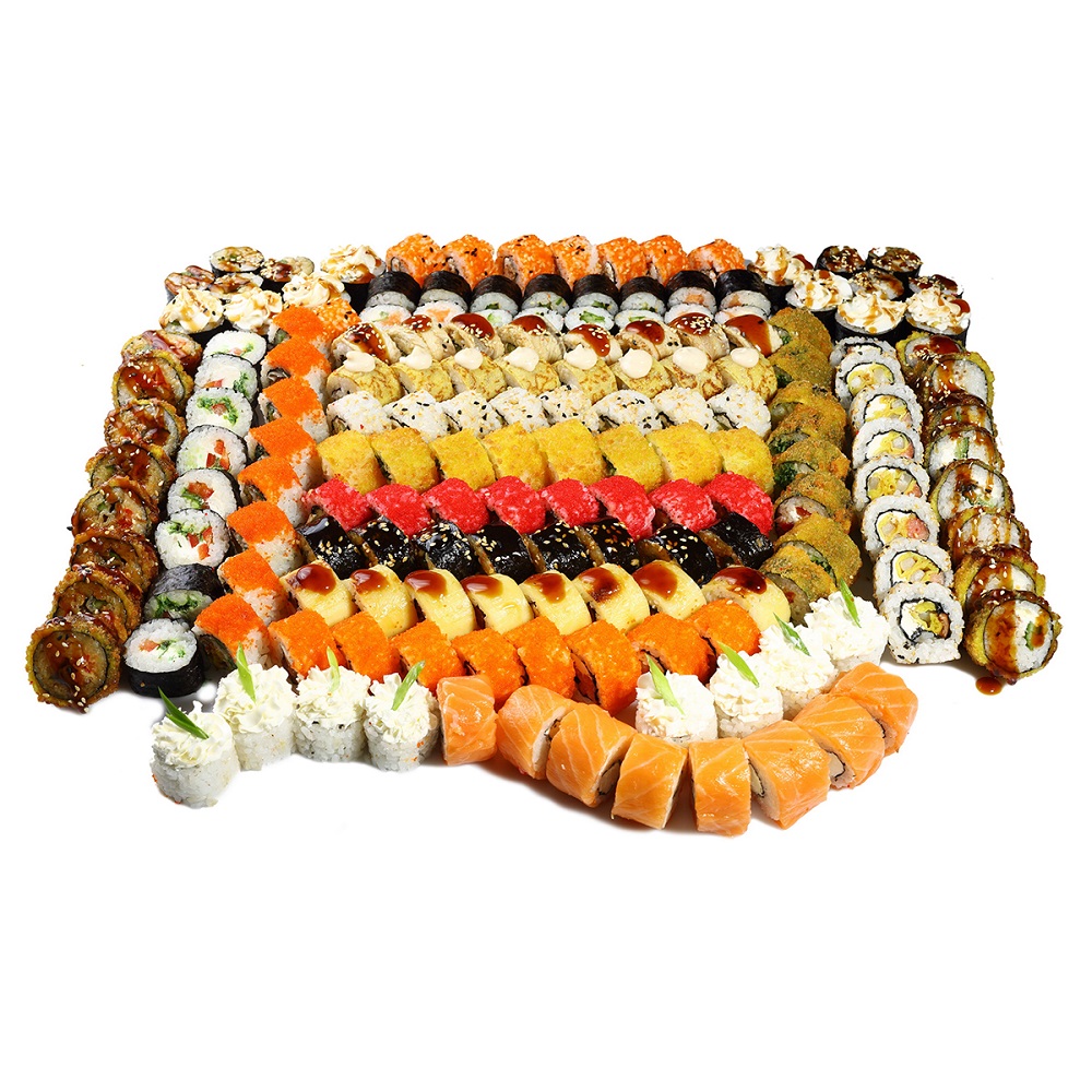 Маки: канада, москва, сяке калифорния, тори терияки, динамит, самурай, сейко; Нигири: сяке, эби, унаги, тобико. Хосомаки: каппа, сяке, текка, унаги, эби;